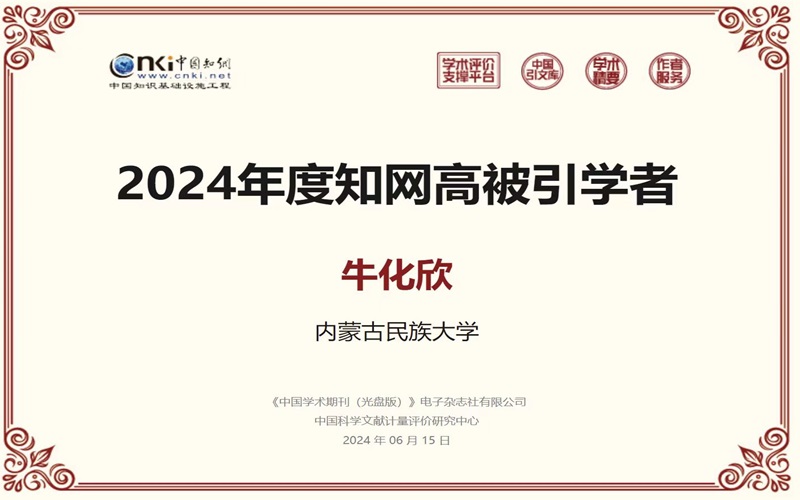 近日,中国知网发布了高被引学者学者名单。我校杨恒山、姜永志、高凯、牛化欣等4名教授成功入选,其中杨恒山、姜永志、牛化欣教授各有1篇入选高被引论文Top0.1%。