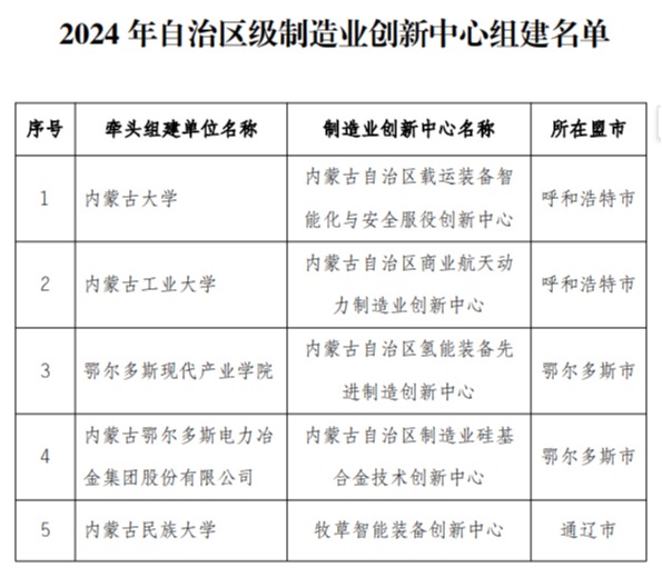 近日,内蒙古自治区工业和信息化厅公布2024年自治区级制造业创新中心组建名单,由我校工学院陈雪艳教授牵头组建的牧草智能装备创新中心榜上有名,填补了我校在该领域的空白。制造业创新中心主要面向制造业创新发展重大需求,开展行业重大关键共性技术研发攻关,以重点领域前沿技术和关键共性技术的研发供给、转移扩散和商业化应用为重点,完成从技术开发到转移扩散到商业化应用的创新链条各环节活动,打造政产学研用紧密结合的协同创新载体。