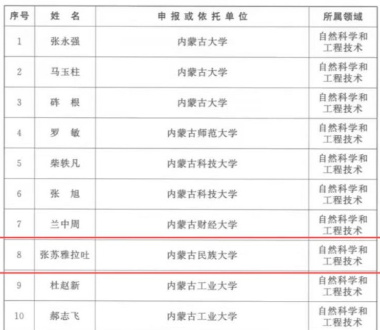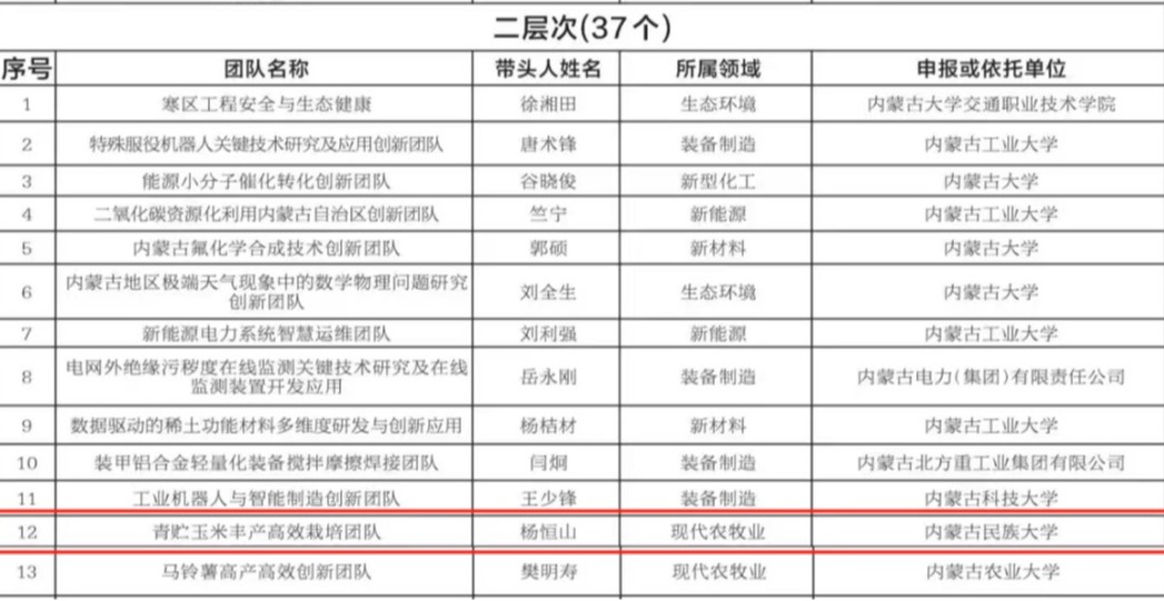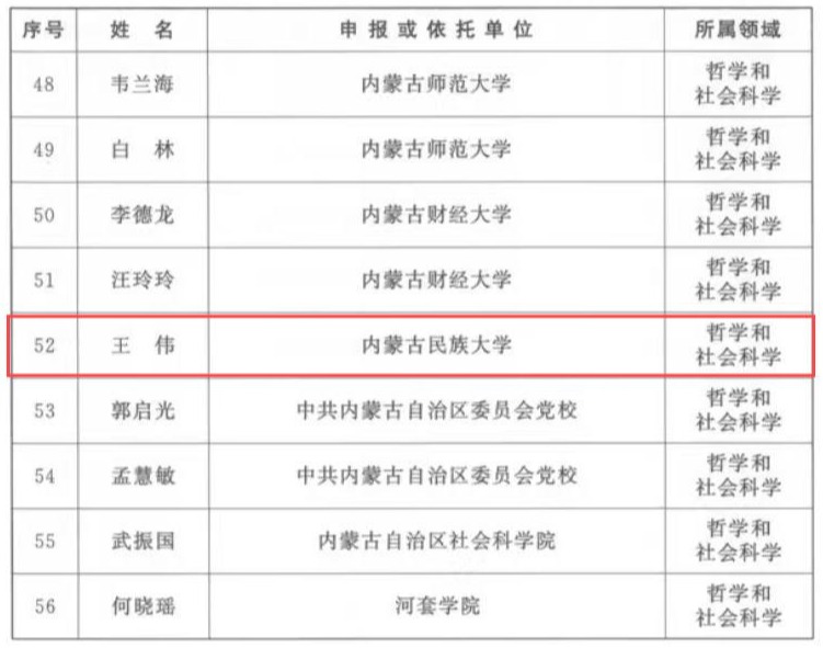 我校以杨恒山教授为带头人的“青贮玉米丰产高效栽培团队”入选现代农牧业领域二层次名单。张苏雅拉图、王伟两位教师分别入选自然科学和工程技术领域、哲学和社会科学领域个人项目(青年拔尖人才专项培养计划)。